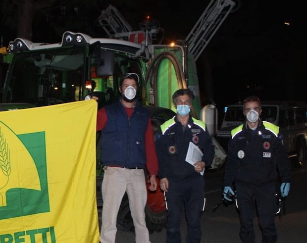 la coldiretti rende noto che “i trattori degli agricoltori dei soci sono stati mobilitati in tutta italia per sanificare strade e piazze con la distribuzione di acqua disinfettante grazie all’uso di irroratori, nebulizzatori e atomizzatori. lo rende noto il presidente della coldiretti ettore PRANDINI che per combattere l’emergenza sanitaria del coronavirus ha lanciato un appello a tutti gli associati diffusi lungo la penisola a rendersi disponibili alle autorita’ locali per contribuire alla piu’ ampia opera di bonifica mai realizzata prima. una iniziativa concordata con la protezione civile e resa immediatamente operativa gia’ in piemonte e in veneto dopo l’accordo con il governatore luca ZAIA. i trattori posso operare nelle citta’ e nei paesi riuscendo a raggiungere – sottolinea la coldiretti – anche le aree piu’ interne e difficili dove i mezzi industriali sono in difficolta’ per le ridotte dimensioni delle carreggiate e per le pendenze dei tracciati stradali. si tratta di una mobilitazione che rafforza l’impegno degli agricoltori e contoterzisti in questo difficile momento di emergenza dove 750mila aziende agricole sono impegnate al lavoro per garantire continuita’ delle forniture alimentari alla popolazione nonostante le evidenti difficolta’”.