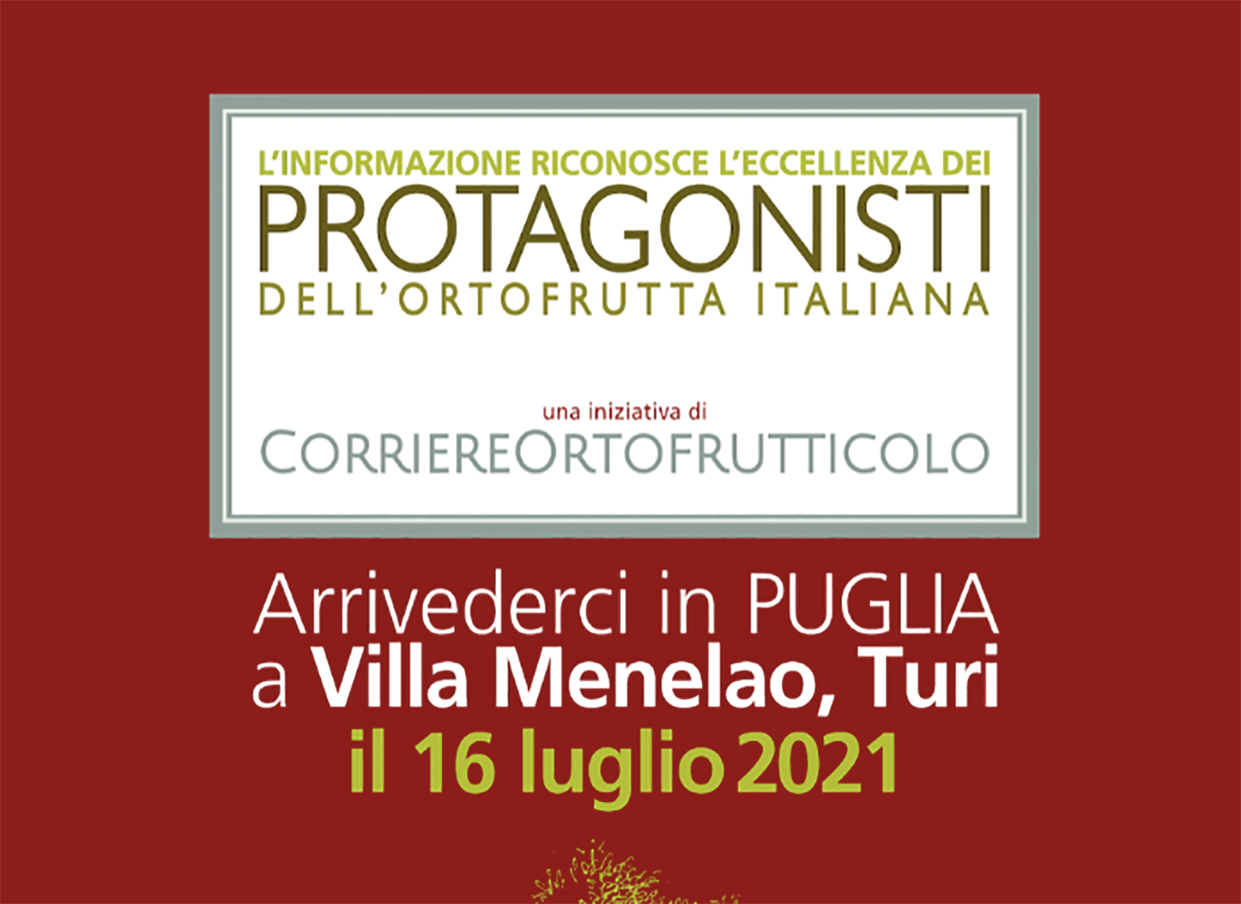 la manifestazione “protagonisti dell’ortofrutta italiana” si svolgera’ il 16 luglio, a partire dalle 16, a villa menelao, masseria del settecento in comune di turi, provincia di bari. il comitato dei partner, che comprende i vertici di fruitimprese, cso italy, italia ortofrutta unione nazionale, italmercati e confagricoltura, ha stabilito di svolgere l’evento “in pienezza, informa un comunicato. in particolare, valutato l’andamento della pandemia, l’organizzazione ha deciso di allargare il numero di presenze fisiche all’evento. quindi, oltre ai protagonisti premiati, ai partner, ad autorita’, organizzatori, stampa, buyer della gdo italiana e sponsor, e’ stato deciso di allargare gli inviti agli ex protagonisti e a tutte le aziende del settore ortofrutticolo interessate a prendere parte all’iniziativa. ulteriori informazioni al link https://bit.ly/2STrNYz.