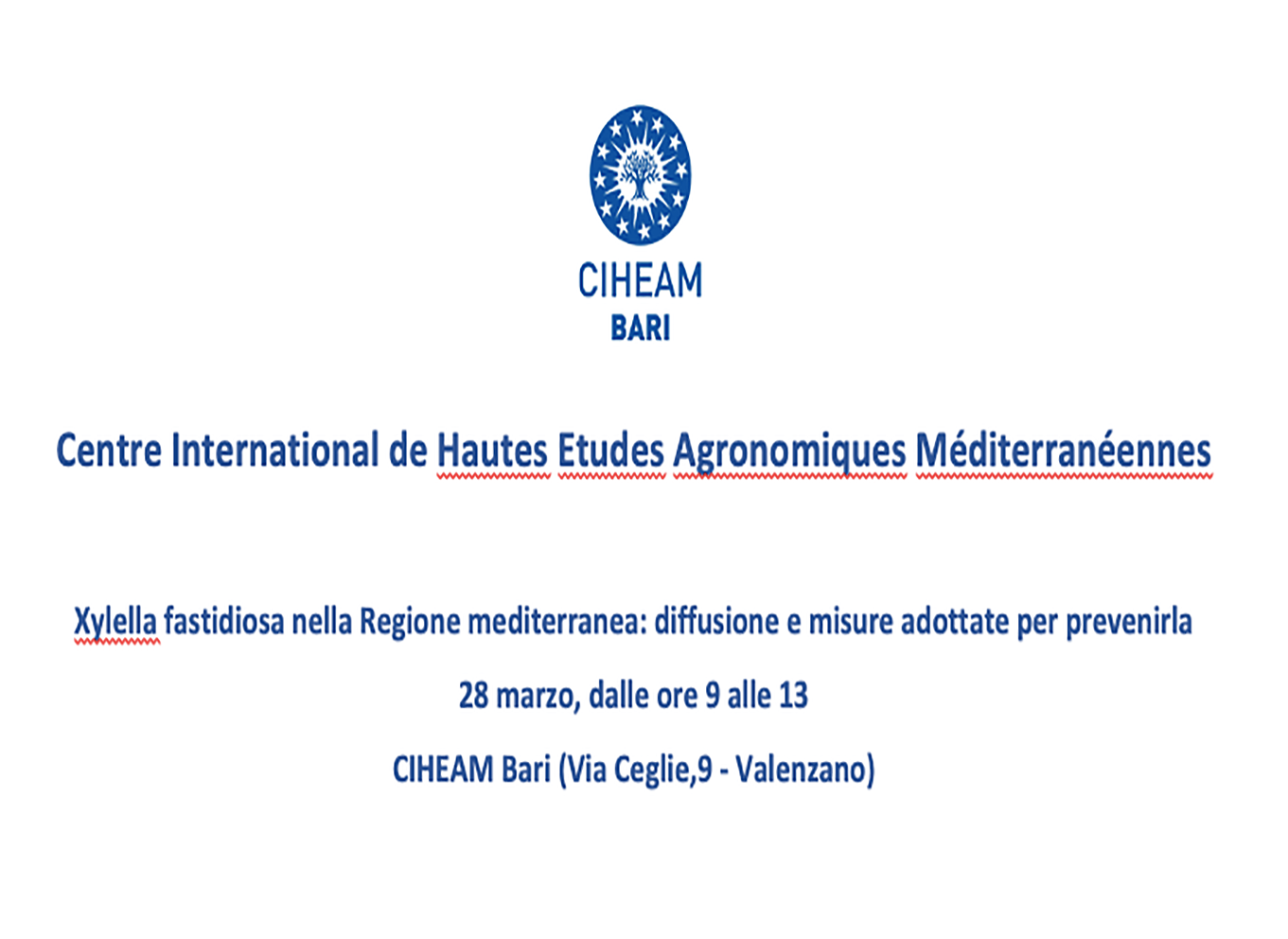 “e’ in programma il prossimo 28 marzo, al ciheam bari (ore 9-13), un workshop internazionale sul tema xylella fastidiosa nella regione mediterranea: diffusione, impatti socioeconomici, azioni e misure adottate per prevenire o contrastare il suo ingresso, insediamento e diffusione”, rende noto un comunicato del ciheam bari, nel precisare che “esperti internazionali faranno il punto sulla diffusione del batterio nella regione mediterranea e esporranno, tra l’altro, le strategie messe in campo per la rigenerazione delle aree devastate, in particolare, pugliesi”. “la conferenza e’ organizzata congiuntamente da regione puglia e ciheam bari, in collaborazione con ordine dei giornalisti – consiglio regionale della puglia e associazione giornalisti agroalimentare puglia”, informa il comunicato, nel concludere che “l’evento vale come evento formativo in presenza per i giornalisti, per un massimo di 30 partecipanti e dara’ diritto a 4 crediti”. iscrizioni sulla piattaforma formazionegiornalisti.it.