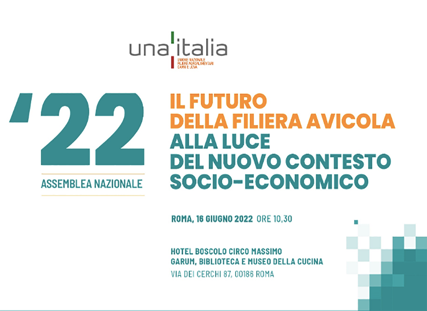 “giovedi’ 16 giugno, alle ore 10.30, si terra’ l’assemblea unaitalia (unione nazionale filiere agroalimentari carni e uova) “il futuro della filiera avicola alla luce del nuovo contesto socio-economico” a roma all’hotel boscolo circo massimo (via dei cerchi 87). all’evento partecipano oltre ai vertici di unaitalia: giovanni BRUNO, presidente banco alimentare; ettore PRANDINI, presidente di coldiretti; carlo PICCININI, presidente di fedagri pesca-confcooperative; stefania TRENTI, head of industry office intesa san paolo; filippo GALLINELLA, presidente comagri camera; elio CATANIA, consigliere del ministro per le politiche agricole; andrea COSTA, sottosegretario al ministero della salute. a seguire lo show cooking dello chef max MARIOLA. l’evento puo’ essere seguito anche in streaming previo accredito. locandina disponibile al link: https://bit.ly/3Hc2O7m“, informa unaitalia.