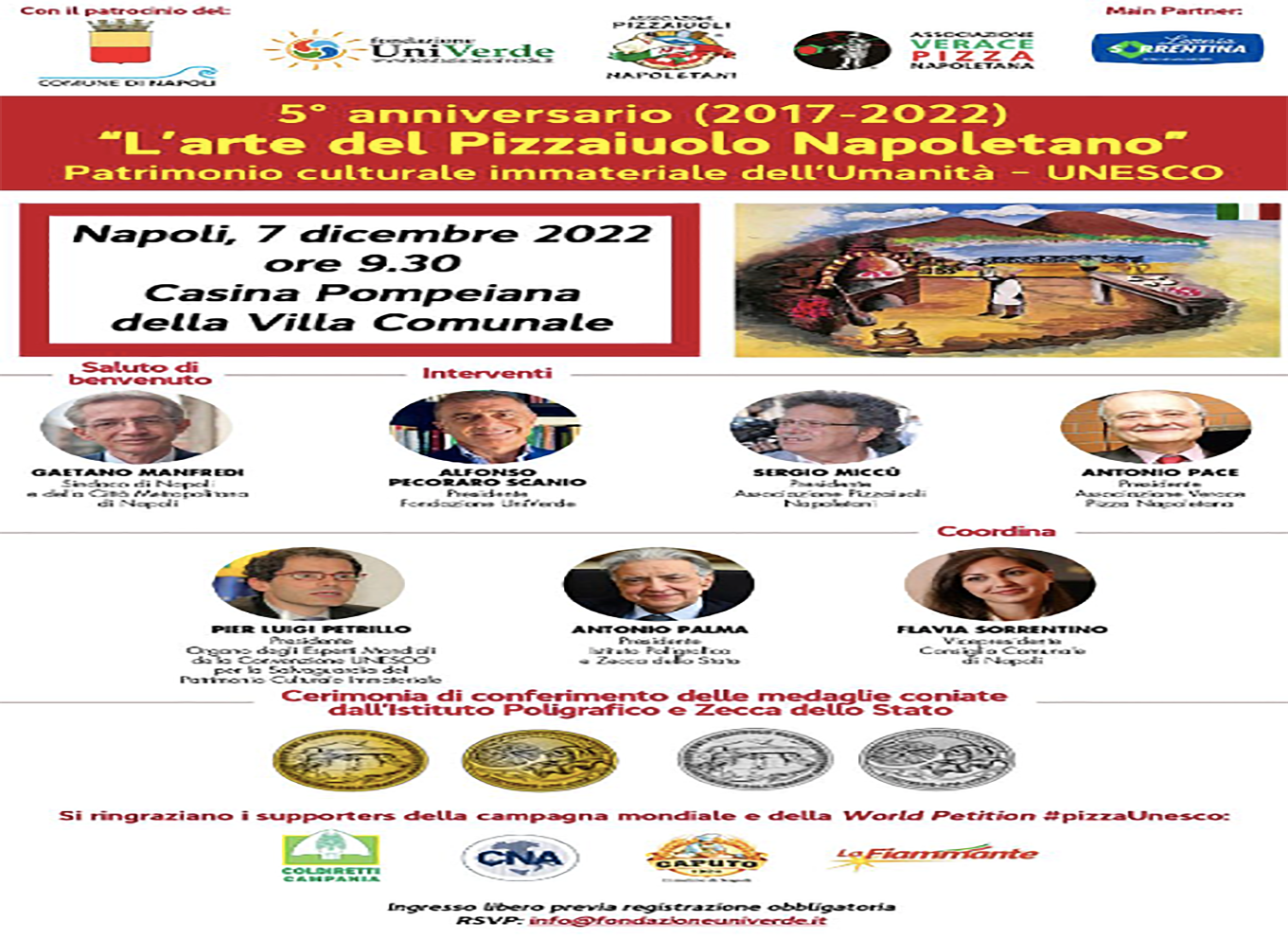 (riproduzione riservata) sara’ celebrato domani, mercoledi’ 7 dicembre, dalle ore 9.30, alla casina pompeiana della villa comunale, il 5° anniversario (2017-2022) del riconoscimento de “l’arte del pizzaiuolo napoletano” nella lista…