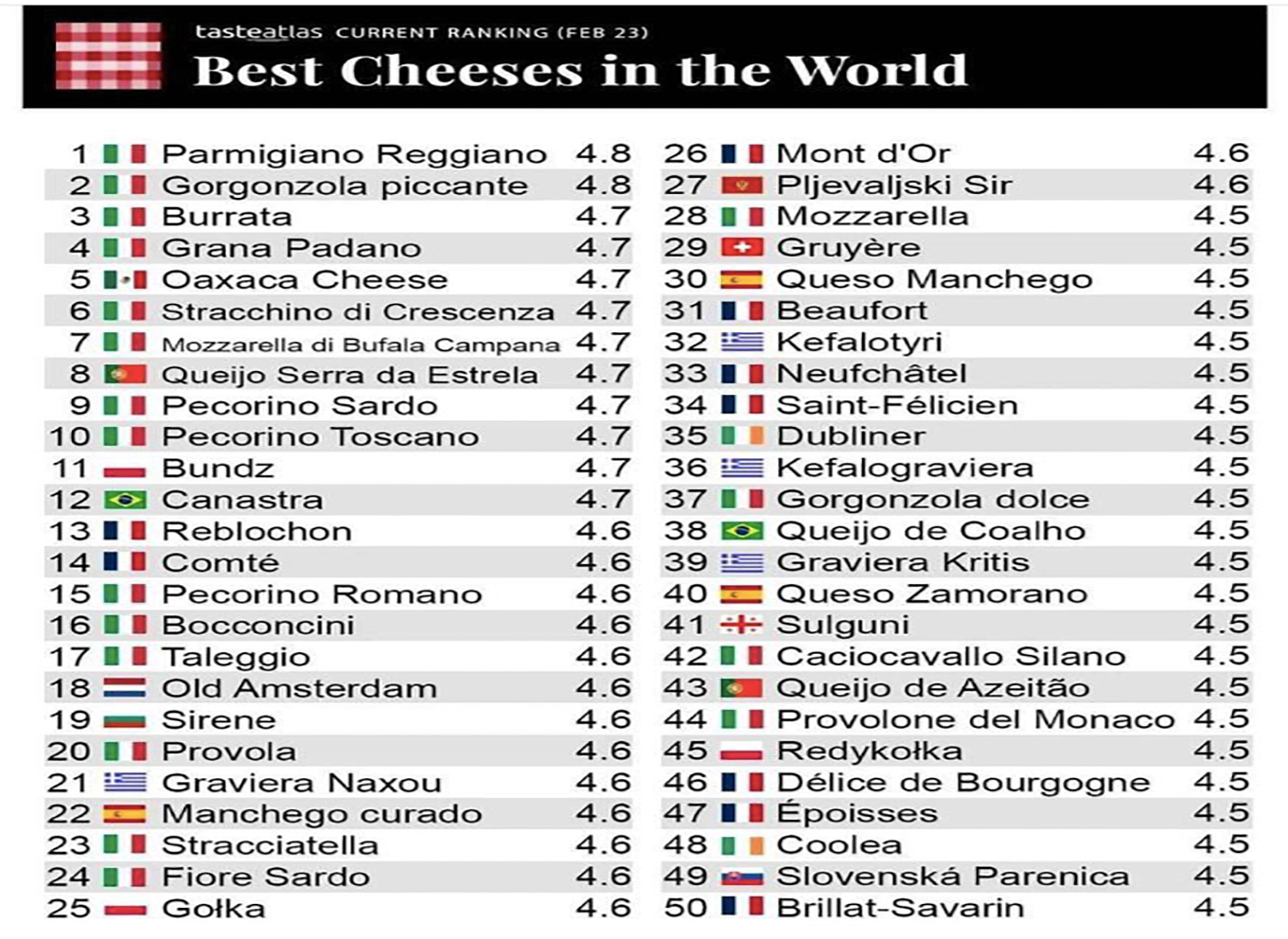 MIGLIORI FORMAGGI NEL MONDO