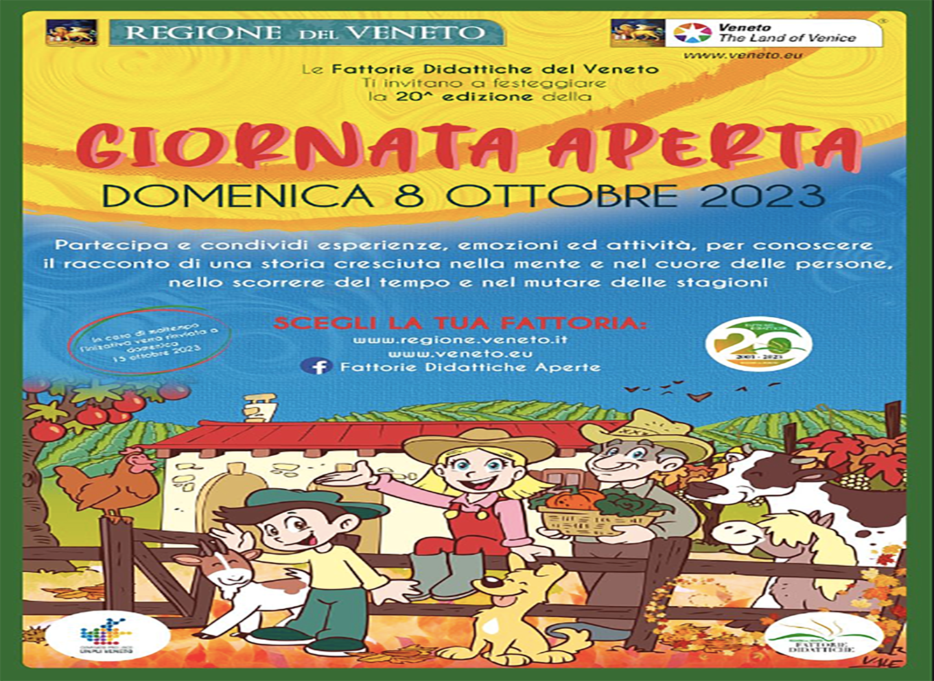 compie vent’anni l’edizione delle fattorie didattiche aperte di quest’anno, sottolinea un comunicato di coldiretti veneto, spiegando che “domenica 8 ottobre 2023 l’appuntamento con la campagna attraverso le forme educative legate al contatto con la natura si rinnova e sigla un patto tra apprendimento diretto e il mondo dell’agricoltura. organizzato dalla regione del veneto vede l’adesione di numerose aziende agricole di coldiretti iscritte all’elenco regionale. laboratori, giochi sull’aia, percorsi sensoriali e tanto altro nei programmi di ciascuna realta’: c’e’ solo l’imbarazzo della scelta, assicurano gli operatori agricoli che hanno intrapreso questo indirizzo per offrire ai cittadini l’opportunita’ di conoscere l’attivita’ rurale intesa nelle varie espressioni della multifunzionalita’”. per tutte le iniziative e’ obbligatoria l’iscrizione e l’elenco delle fattorie didattiche aperte sono pubblicate nel sito https://www.regione.veneto.it/web/turismo/giornata-aperta e nella pagina Facebook https://www.facebook.com/fattoriedidattichedelveneto/.