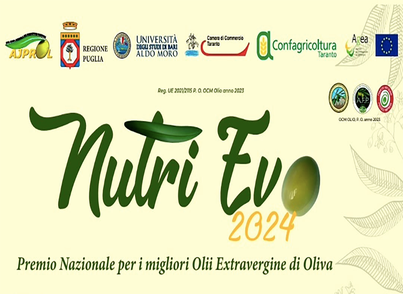 “parte l’edizione 2024 del premio nazionale ‘nutrievo’, concorso oleicolo organizzato da ajprol che promuove le eccellenze dell’olio extravergine di oliva italiano e le sue proprieta’ salutistiche”. lo rende noto un comunicato di ajprol, che prosegue: “la conferenza stampa di presentazione della manifestazione si terra’ domani, giovedi’ 16 novembre, alle ore 9 nella camera di commercio di taranto (sala monfredi). all’incontro prenderanno parte il presidente ajprol angelo DE FILIPPIS e il direttore armando FONSECA (organizzatori del premio), l’assessore regionale all’agricoltura donato PENTASSUGLIA, il presidente di confagricoltura puglia luca LAZZARO”.