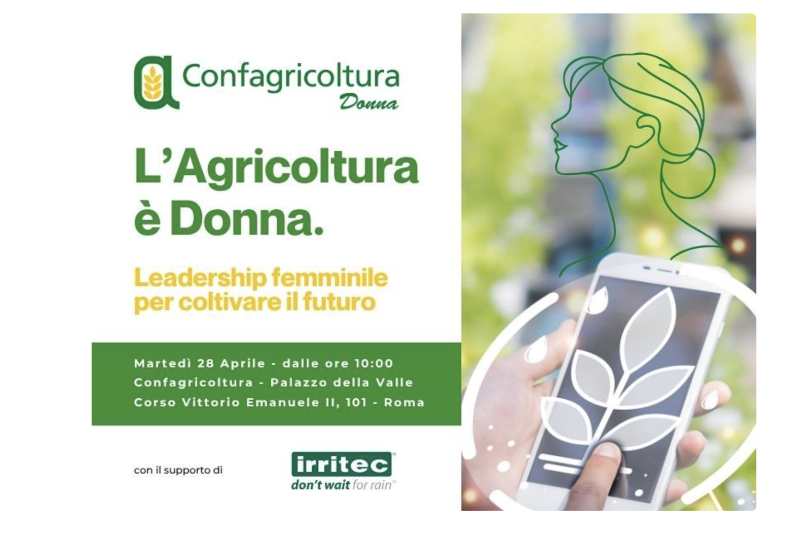 CONFAGRICOLTURA DONNA, 28/4 A ROMA CONVEGNO SU LEADERSHIP FEMMINILE. INTERVENTI DI ROCCELLA, LA PIETRA, GIANSANTI, ODDI BAGLIONI