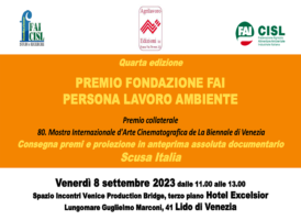MOSTRA DEL CINEMA: FAI-CISL, 8/9 PROIEZIONE DEL DOCUFILM “SCUSA ITALIA” 1 Settembre, 2023 - (riproduzione riservata) "torna alla mostra internazionale d'arte cinematografica de la biennale di venezia il premio collaterale 'persona lavoro ambiente', assegnato dalla fai-cisl e dalla sua fondazione studi e ricerche alle opere considerate piu' interessanti nel trattare i temi del lavoro…