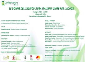 14/6 CONVEGNO CONFAGRICOLTURA DONNE, AGRICOLTURA, ACQUA CON LOLLOBRIGIDA, GIANSANTI, ODDI BAGLIONI 9 Giugno, 2023 - (riproduzione riservata) "siccita', alluvioni, dissesto idrogeologiche mettono a forte rischio le produzioni agricole. quattro settori chiave si uniscono, al di la' delle sigle, per esaminare che cosa fare. le donne del vino, dell'olio, dell'ortofrutta e del riso fanno quadrato partendo…