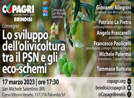 PUGLIA: 17/3 A SAN MICHELE SALENTINO CONVEGNO DI COPAGRI BRINDISI SU OLIVICOLTURA, PSN E ECO-SCHEMI 15 Marzo, 2023 - (riproduzione riservata) "'lo sviluppo dell'olivicoltura tra il psn e gli eco-schemi' e' il principale tema all'ordine del giorno dei lavori di un convegno organizzato dalla copagri brindisi per il 17 marzo, dalle ore 17:30 presso l'azienda f.lli palumbo di san…