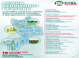 FAI CISL CALABRIA: 18/10 CONVEGNO SU BONIFICA IN ERA TRANSIZIONE ECOLOGICA E AGRICOLTURA SOSTENIBILE 13 Ottobre, 2022 - (riproduzione riservata) "'acqua, territorio, persone. la bonifica calabrese nell'era della transizione ecologica e dell'agricoltura sostenibile' e' il tema promosso dal convegno organizzato dalla fai cisl calabria in programma il prossimo 18 ottobre presso il museo nazionale archeologico della sibaritide a…