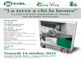 FAI CISL: IL 14/10 PRESENTAZIONE LIBRO DI MAURO PITTERI SU LOTTE MEZZADRI VENETI NEL SECONDO ‘900 7 Ottobre, 2022 - (riproduzione riservata) un comunicato stampa della fai cisl rende noto che: "a partire dal 1950 prende forma nelle campagne della sinistra piave e del veneto orientale una rivoluzione sociale che vede protagonisti i mezzadri e le loro famiglie. guida questo… [addtoany buttons=”facebook,twitter,email”]