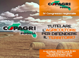 COPAGRI PUGLIA: IL 4/10 A BARI IL IV CONGRESSO REGIONALE 27 Settembre, 2022 - (riproduzione riservata) un comunicato stampa di copagri puglia rende noto che: "'tutelare l'agricoltura per difendere il territorio' e' l'ambizioso tema al centro del IV congresso della copagri puglia, che si terra' martedi' 4 ottobre, dalle ore 9:30 presso la masseria…