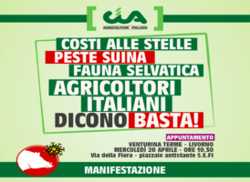 CIA, IL 20/04 A CAMPIGLIA (LI) IN PIAZZA CONTRO EMERGENZA COSTI PRODUZIONE, PSA, FAUNA SELVATICA 14 Aprile, 2022 - (riproduzione riservata) "nuova e terza manifestazione di cia-agricoltori italiani contro costi di produzione alle stelle, peste suina ed emergenza fauna selvatica", afferma un comunicato di cia, nel rendere noto che "a mobilitarsi, scendendo in strada tra bandiere e trattori, questa… [addtoany buttons=”facebook,twitter,email”]