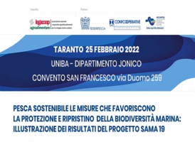 PESCA: SOSTENIBILITA’, SEMINARIO SUI RISULTATI DEL PROGETTO SAMA 19 IL 25 FEBBRAIO 23 Febbraio, 2022 - (riproduzione riservata) si svolgera' il 25 febbraio a taranto il seminario dal titolo "pesca sostenibile le misure che favoriscono la protezione e ripristino della biodiversita' marina: illustrazione dei risultati del progetto sama 19", organizzato da legacoop agroalimentare, federpesca, confcooperative federcoopesca…