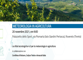 “METEOROLOGIA IN AGRICOLTURA”: IL 20/11 CONVEGNO DI CONDIFESA BOLZANO, CODIPRA TRENTO E ASNACODI 10 Novembre, 2021 - (riproduzione riservata) il 20 novembre 2021, alle ore 9:00, nel palazzetto dello sport di rovereto (tn) si terra' il convegno "le sfide tecnologiche 4.0 per la meteorologia in agricoltura", organizzato in collaborazione con condifesa bolzano, codipra trento e asnacodi italia.…