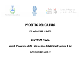 CIHEAM BARI, IL 12 A BARI PRESENTAZIONE STATO LAVORI E PROSSIMI PASSI PROGETTO “AGRICULTURE” 10 Novembre, 2021 - (riproduzione riservata) "venerdi' 12 novembre alle ore 12.00 nella sala consiliare della citta' metropolitana di bari, sara' presentato lo stato dei lavori e i prossimi passi di agricultura, il progetto, senza precedenti nel nostro territorio, nato per combattere l'esclusione sociale… [addtoany buttons=”facebook,twitter,email”]