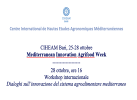 DAL 25 AL 28 OTTOBRE AL CIHEAM BARI “MEDITERRANEAN INNOVATION AGRIFOOD WEEK” 20 Ottobre, 2021 - (riproduzione riservata) "una settimana di incontri, seminari, laboratori, brokeraggio in programma al ciheam bari dal 25 al 28 ottobre, incentrata sul tema dell'innovazione e sulla creazione di start up nella area mediterranea, volta a rafforzare l'imprenditorialita' giovanile e la cooperazione",…