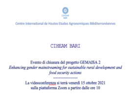 CIHEAM BARI, IL 15 CERIMONIA ONLINE DI CHIUSURA DEL PROGETTO GEMAISA 2 13 Ottobre, 2021 - (riproduzione riservata) "si terra' venerdi' 15 p.v., su zoom (inizio alle ore 10), la cerimonia di chiusura del progetto regionale ge.mai.sa 2", rende noto un comunicato del ciheam bari, nel precisare che "ge.mai.sa 2 - enhancing gender mainstreaming for sustainable…
