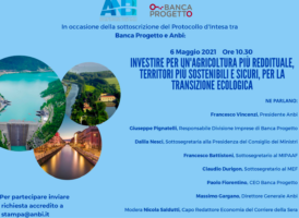 ANBI: IL 6 MAGGIO VIDEOCONFERENZA PER PROTOCOLLO INTESA CON BANCA PROGETTO 3 Maggio, 2021 - (riproduzione riservata) un comunicato dell'anbi informa che "giovedi' 6 maggio, dalle ore 10.30 in occasione del protocollo d'intesa fra banca progetto ed anbi, si terra' la videoconferenza in rete "investire per un'agricoltura piu' reddituale, territori piu' sostenibili e sicuri, per… PNRR: COLDIRETTI, L’AGRICOLTURA CITATA 62 VOLTE NEL PIANO DRAGHI 3 Maggio, 2021 - (riproduzione riservata) "per ben 62 volte la parola agricoltura viene richiamata nel piano nazionale di ripresa e resilienza varato dal governo di mario DRAGHI, che traccia il percorso dell'italia nei prossimi anni con l'uscita dall'emergenza covid": e' quanto emerge dall'analisi…