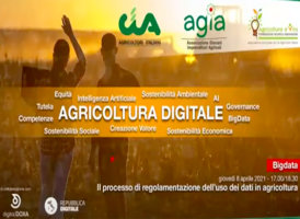 AGRICOLTURA DIGITALE: AGIA-CIA PRONTA A GUIDARE RIVOLUZIONE BIGDATA 9 Aprile, 2021 - (riproduzione riservata) "i giovani imprenditori agricoli sono pronti a guidare la vera rivoluzione dei bigdata in agricoltura per renderla protagonista di una vera transizione ecologica, ma chiedono il superamento del digital divide e una regolamentazione europea per la proprieta', la… ORDINAMENTI PRODUTTIVI: CONFAGRICOLTURA, SERVONO POLITICHE ADEGUATE PER ACCOMPAGNARE TRASFORMAZIONI 9 Aprile, 2021 - (riproduzione riservata) "i dati diffusi dall'istat confermano la tendenza di lungo periodo a una trasformazione degli ordinamenti produttivi dell'agricoltura del nostro paese", afferma la confagricoltura, nel prcisare che "tra il 2010 ed il 2019, infatti, la sau (superficie agricola utilizzata)…