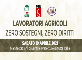 DL SOSTEGNI: FAI, FLAI, UILA, IL 10/4 LAVORATORI AGRICOLI IN PROTESTA DAVANTI PREFETTURE 8 Aprile, 2021 - (riproduzione riservata) "le lavoratrici e i lavoratori agricoli scendono in piazza, sabato 10 aprile, sotto le sedi delle prefetture di tutta italia, a sostegno della piattaforma rivendicativa di fai-cisl, flai-cgil e uila-uil, per chiedere a governo e parlamento di modificare…