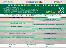 IL 18 “ALBANESI IN ITALIA” CONVEGNO SU LAVORO, INTEGRAZIONE, PREVIDENZA DI FAI CISL, CONFRONTI, ISAS 16 Novembre, 2020 - (riproduzione riservata) "si svolgera' mercoledi' 18 novembre, alle ore 10:30 in videoconferenza, il convegno 'albanesi in italia: lavoro, integrazione, previdenza', promosso dalla fai cisl in partenariato con la rivista e centro studi 'confronti' e il patronato inas cisl", rende noto…