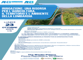 ANBI LOMBARDIA: 23/10 A MILANO CONVEGNO SU IRRIGAZIONE CON BEDUSCHI, DELL’ACQUA, PRANDINI, GARGANO 20 Ottobre, 2023 - (riproduzione riservata) "anbi lombardia torna a confrontarsi sulla gestione dell'acqua nella nostra regione con il convegno 'irrigazione: una risorsa per l'agricoltura, il territorio e l'ambiente della lombardia'. l'iniziativa si terra' il prossimo lunedi' 23 ottobre 2023 - ore 15 al…
