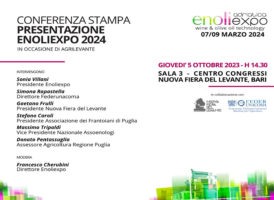 IL 5/10 A BARI PRESENTAZIONE DI ENOLIEXPO CON PENTASSUGLIA, RAPASTELLA, VILLANI 4 Ottobre, 2023 - (riproduzione riservata) giovedi' 5 ottobre alle ore 14.30, nella sala 3 del centro congressi nella sede della nuova fiera del levante a bari, sara' presentata alla stampa l'edizione 2024 di enoliexpo, la rassegna dedicata alle filiere del vino e dell'olio…